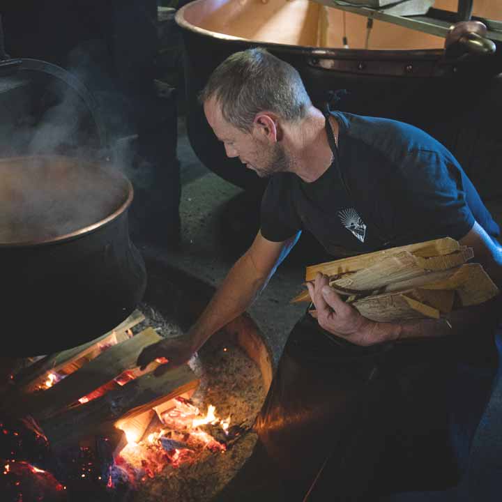 season. The whole family works together, from managing the cows, about 50 Swiss Flex Brune, to making cheese, which is still done in copper