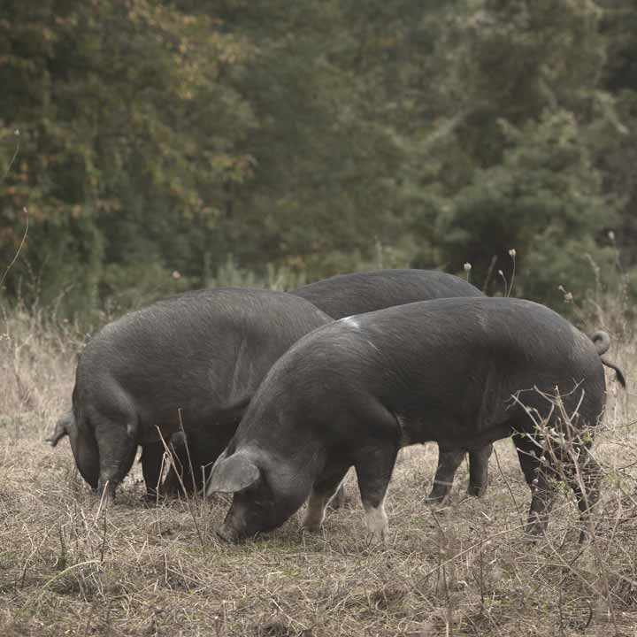 Casentino pigs arrived a bit later, they are the result of a cross between a classic pig and Moro Romagnolo or Cinta Senese. Those animal are the
